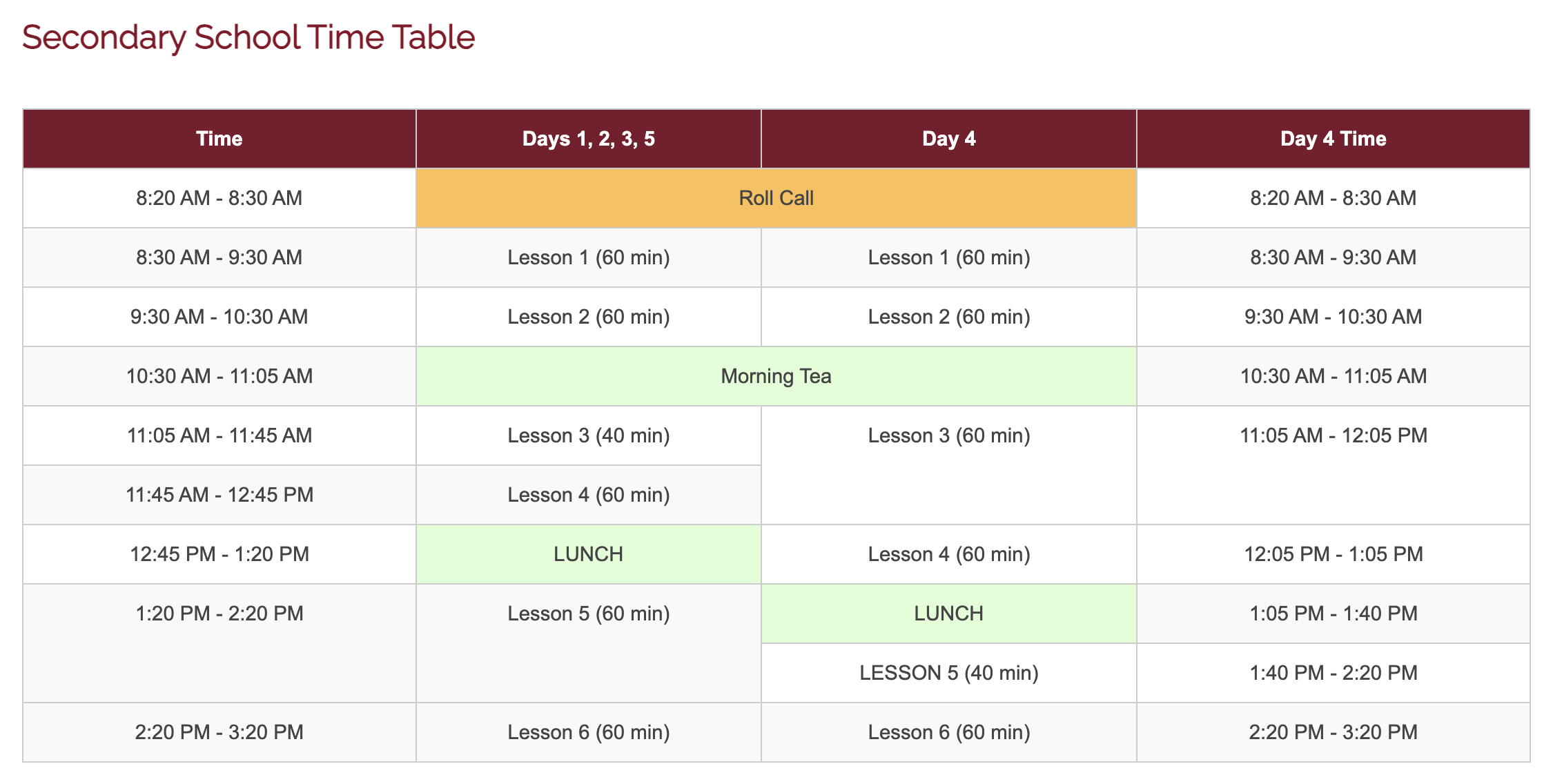 - 上課時間:週一到週五 8:20 am - 3:20 pm
