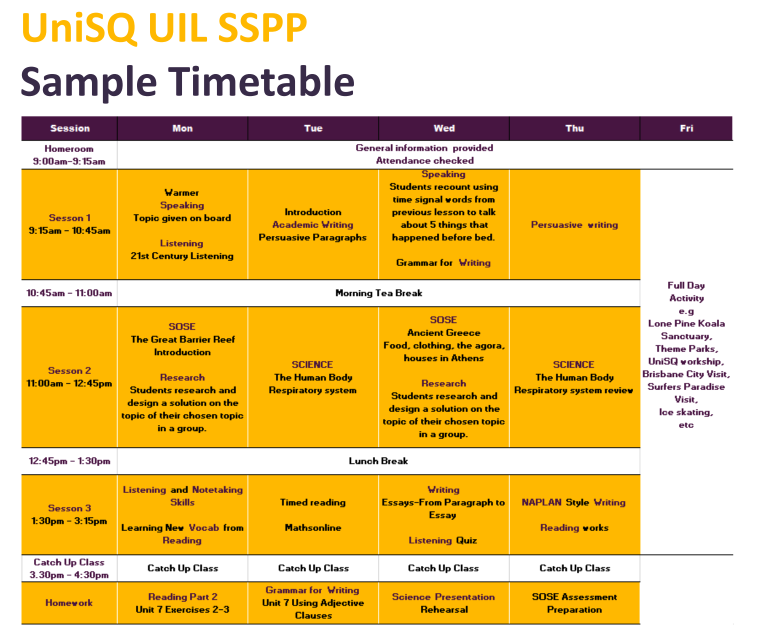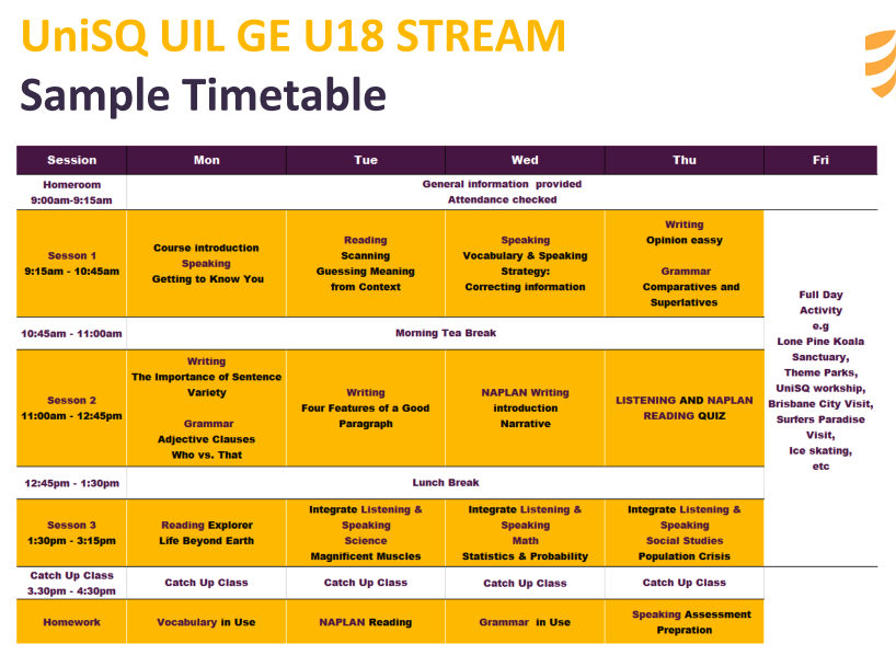 - 適合年齡:6~11歲 PSPP(only Brisbane)、12~17歲 GE/ SSPP(全校區)