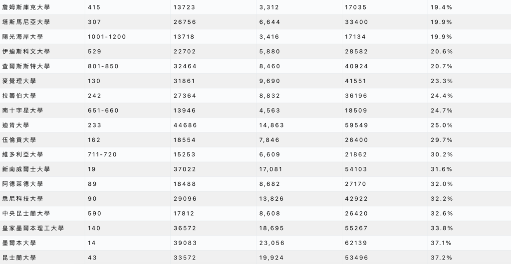 相信很多同學在留學前都好奇學校有多少國際學生,有一些同學留學的目標是融入當地的生活、希望習得一口流利的英文,如果大家Google「澳洲哪家大學最多國際學生」的話,你會發現各個網站都在流傳www.universityrankings.com.au/整理的資料,轉發別人的資料不是我們會做的事情,而且上述網站沒有說明數據來自哪裡、如何處理數據。所以!我們為大家整理了澳洲每一家大學國際學生的人數和佔比。
